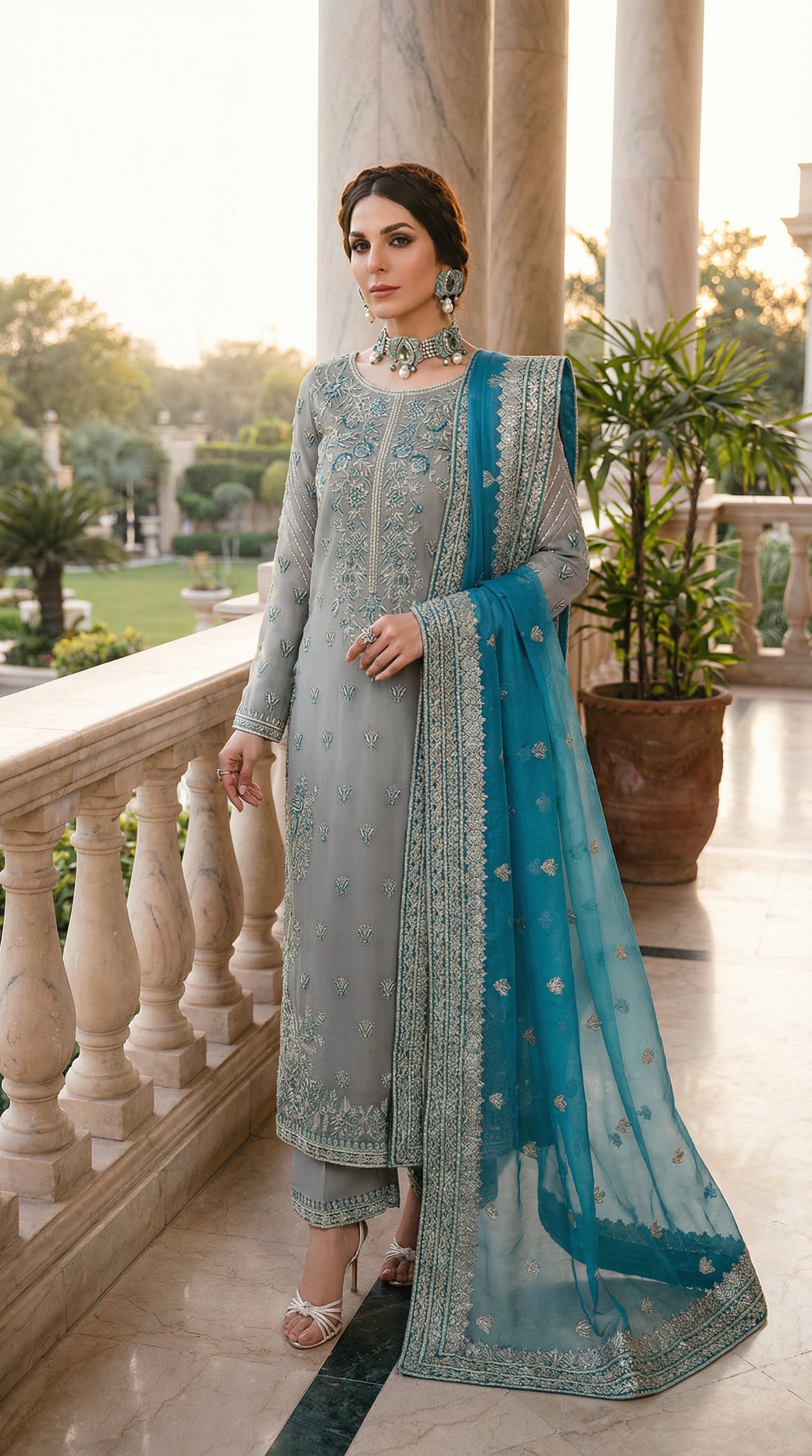 ✔ Dupatta On Organza Fully Embroidered With 4 Sided Appliqué