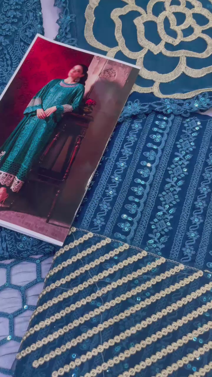 AZURE BLUE DOBLE NECK | 3PIECE UNSTICHED