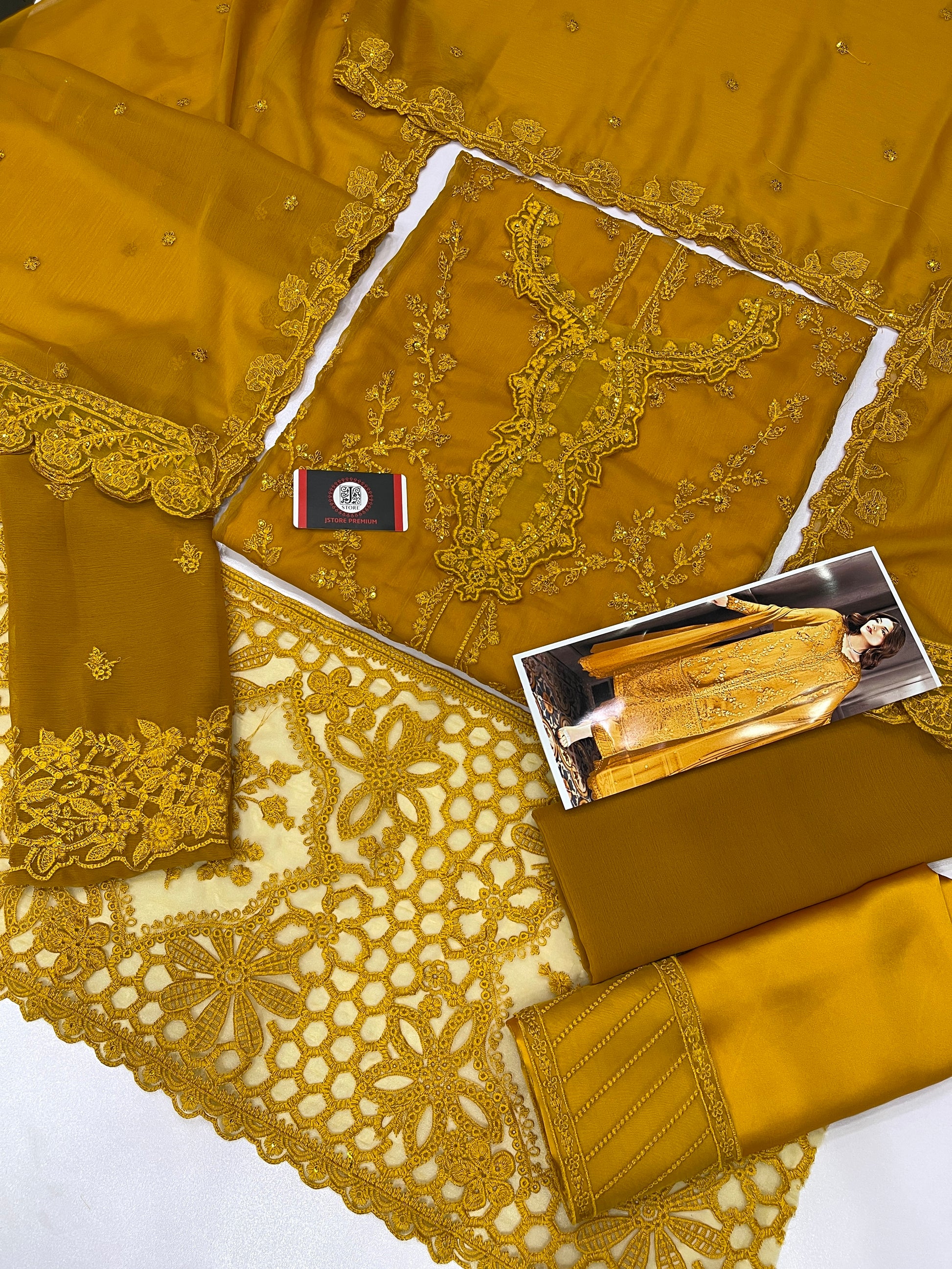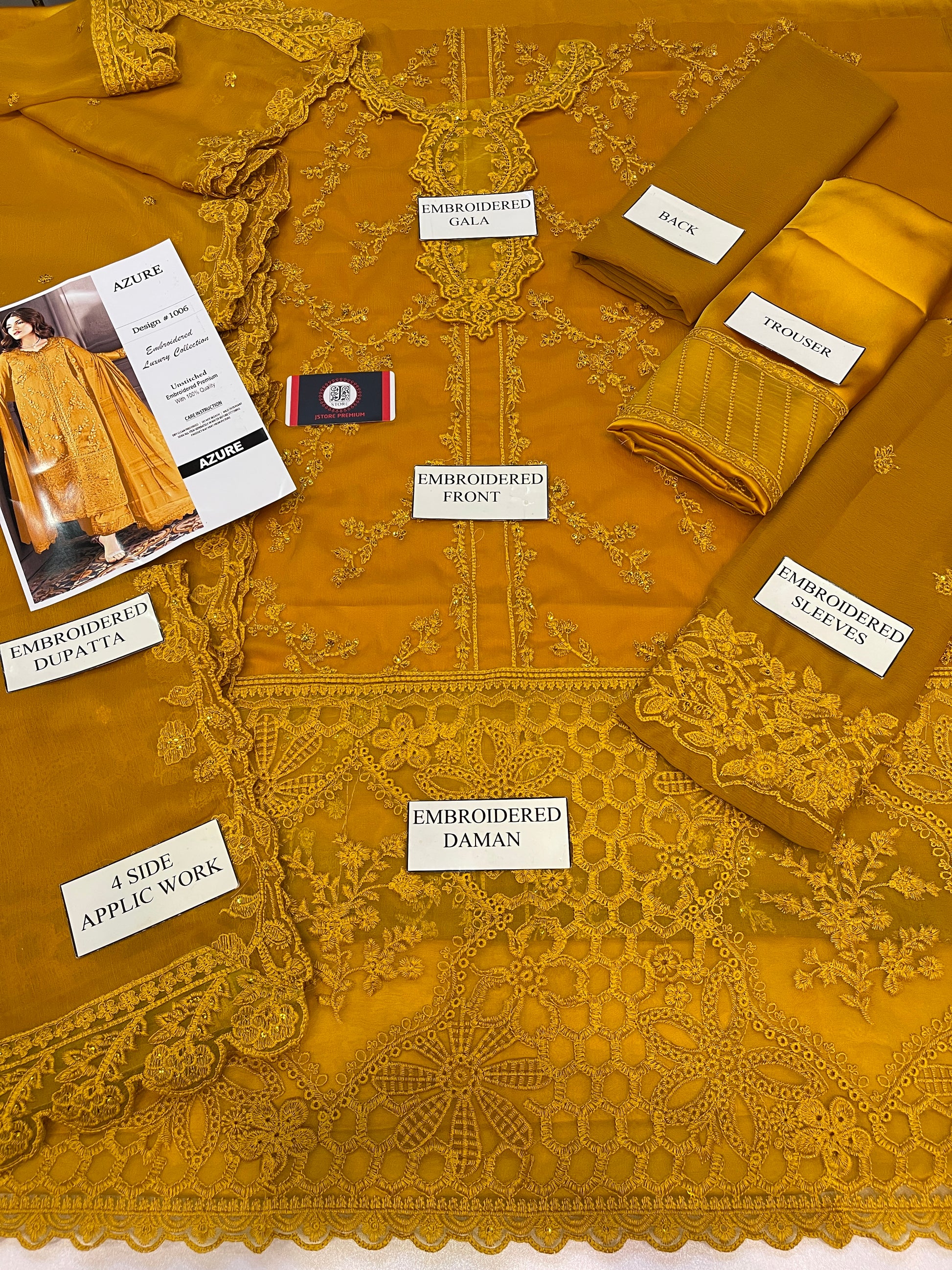 AZURE | MASTARD CHIFFON DRESS PHASE |3PIECE UNSTICHED