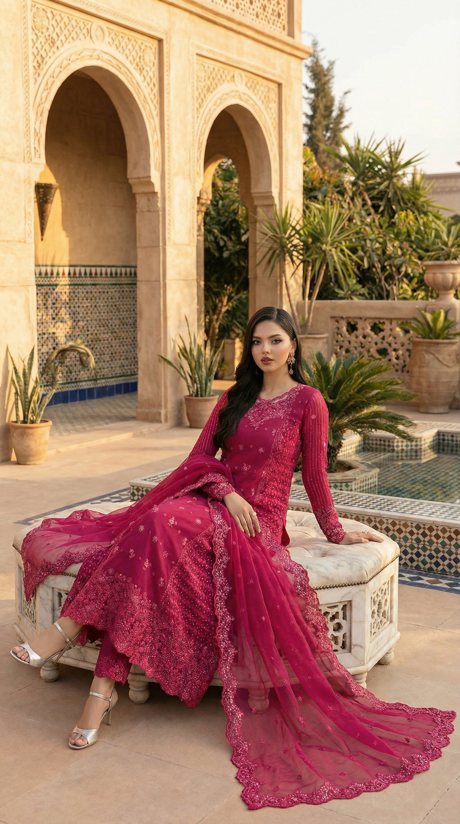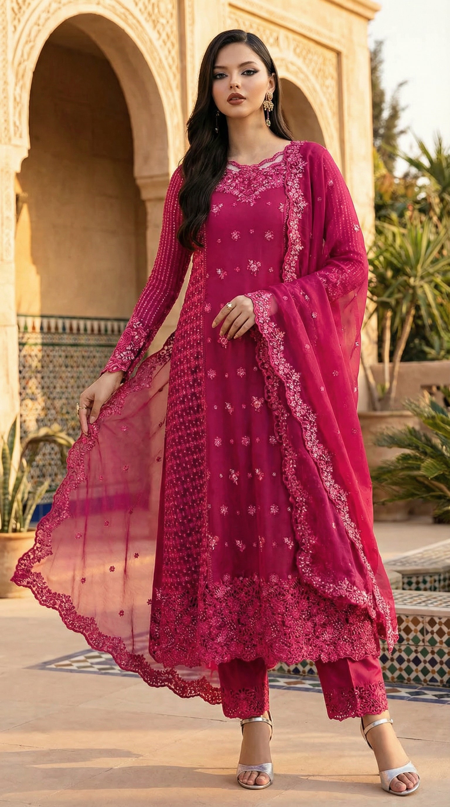 AZURE| FUSCIA PINK PREMIUM CHIFFON WITH CHIFFON DUPATTA |3PIECE UNSTICHED