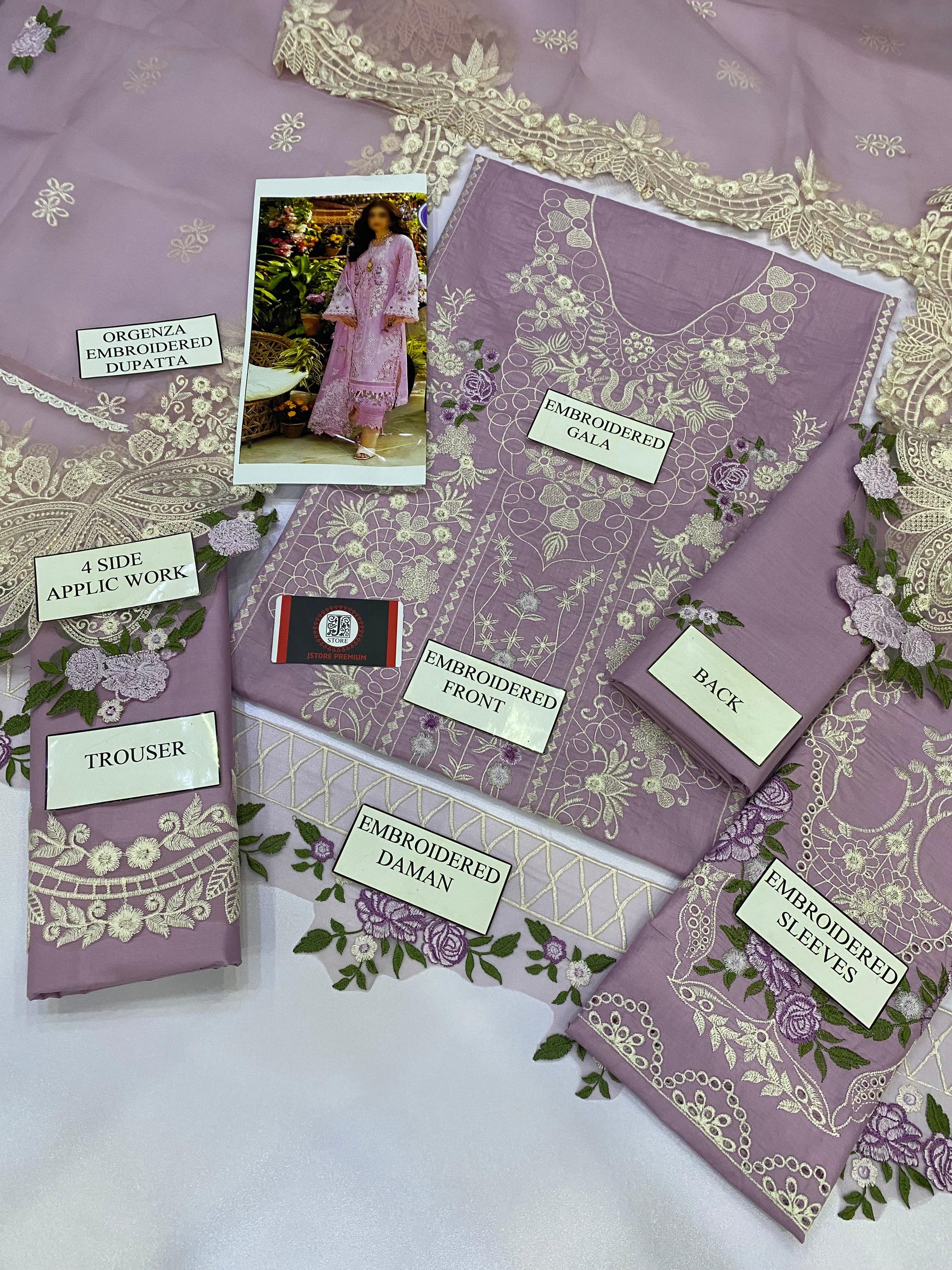 BIN ILYAS COTTON CHIKENKARI ORGENZA DUPATTA |3PEC UNSTICHED
