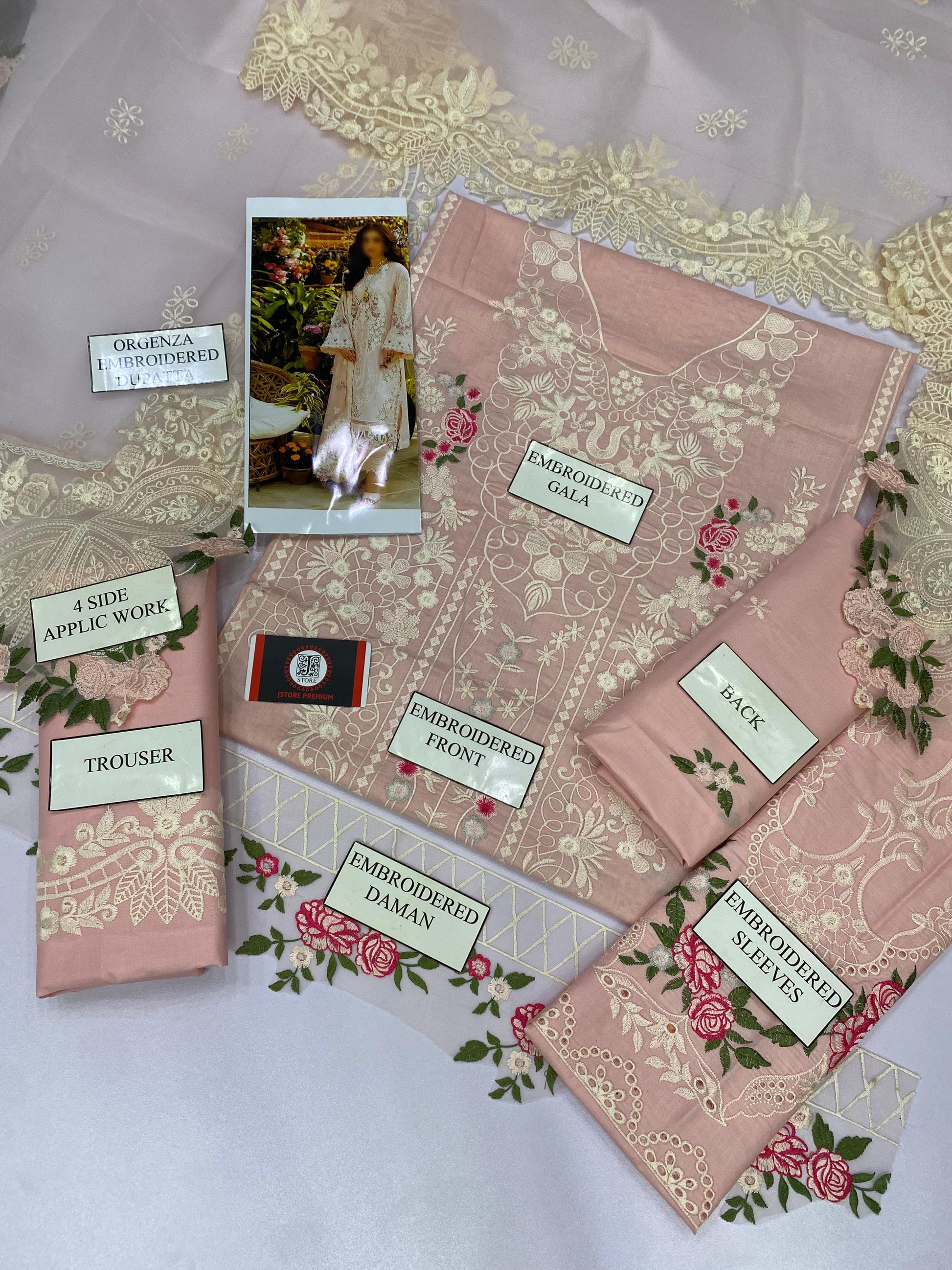 BIN ILYAS COTTON CHIKENKARI ORGENZA DUPATTA |3PEC UNSTICHED
