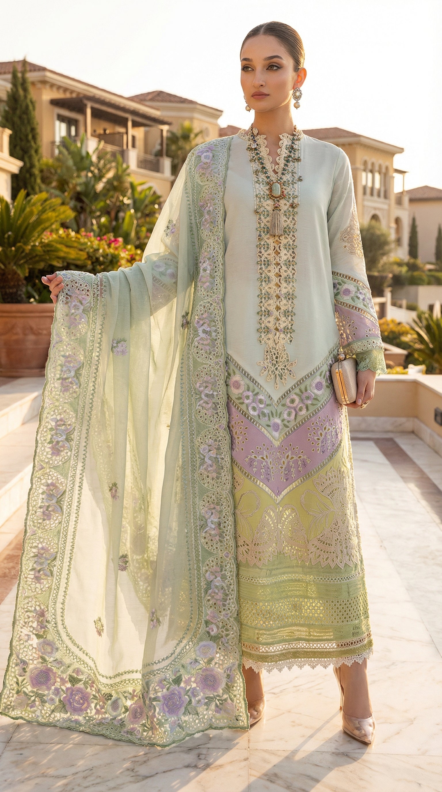CRIMSON CHIKENKARI LAWN WITH BROIDERY DUPATTA |3PEC UNSTICHED