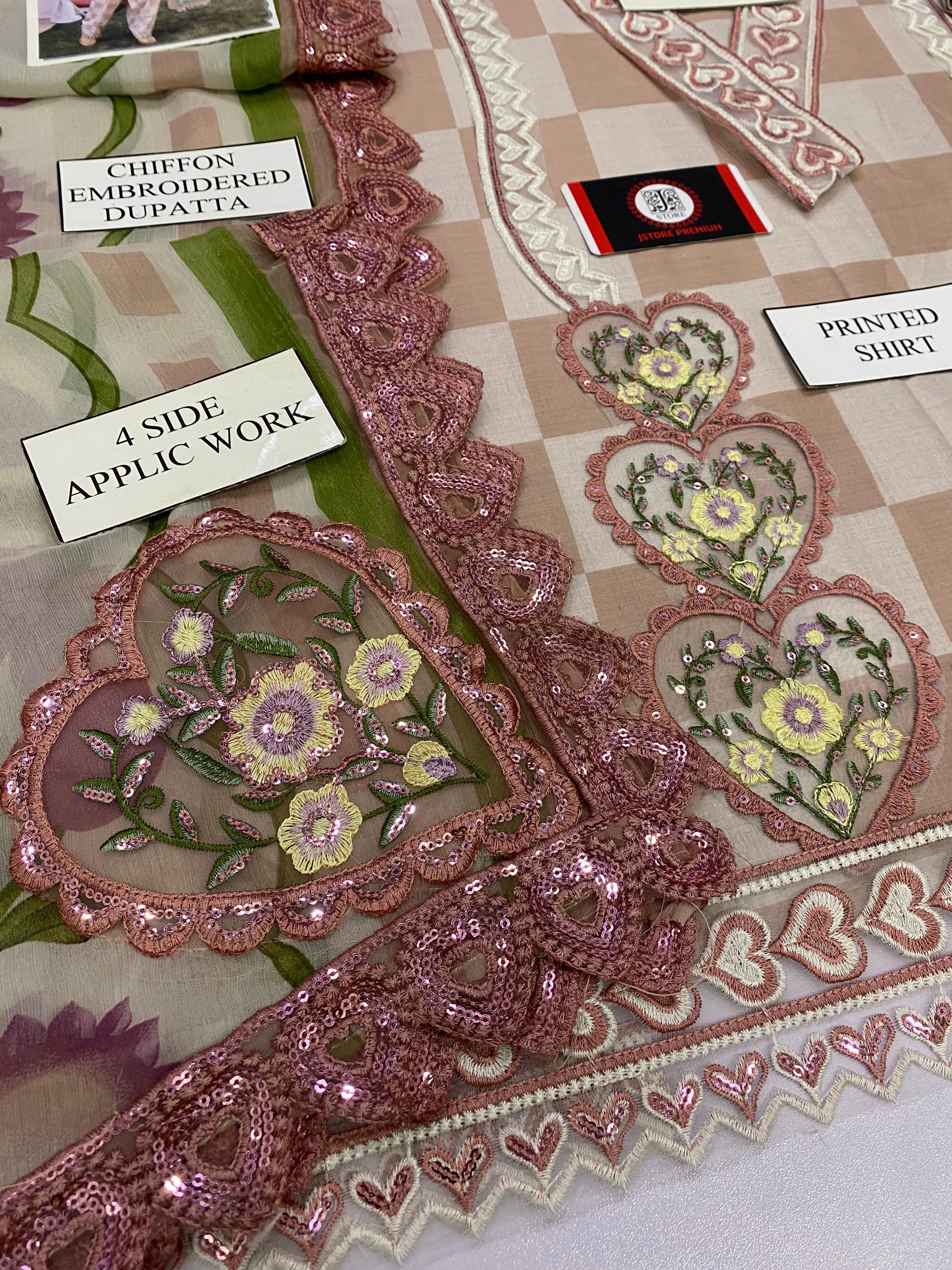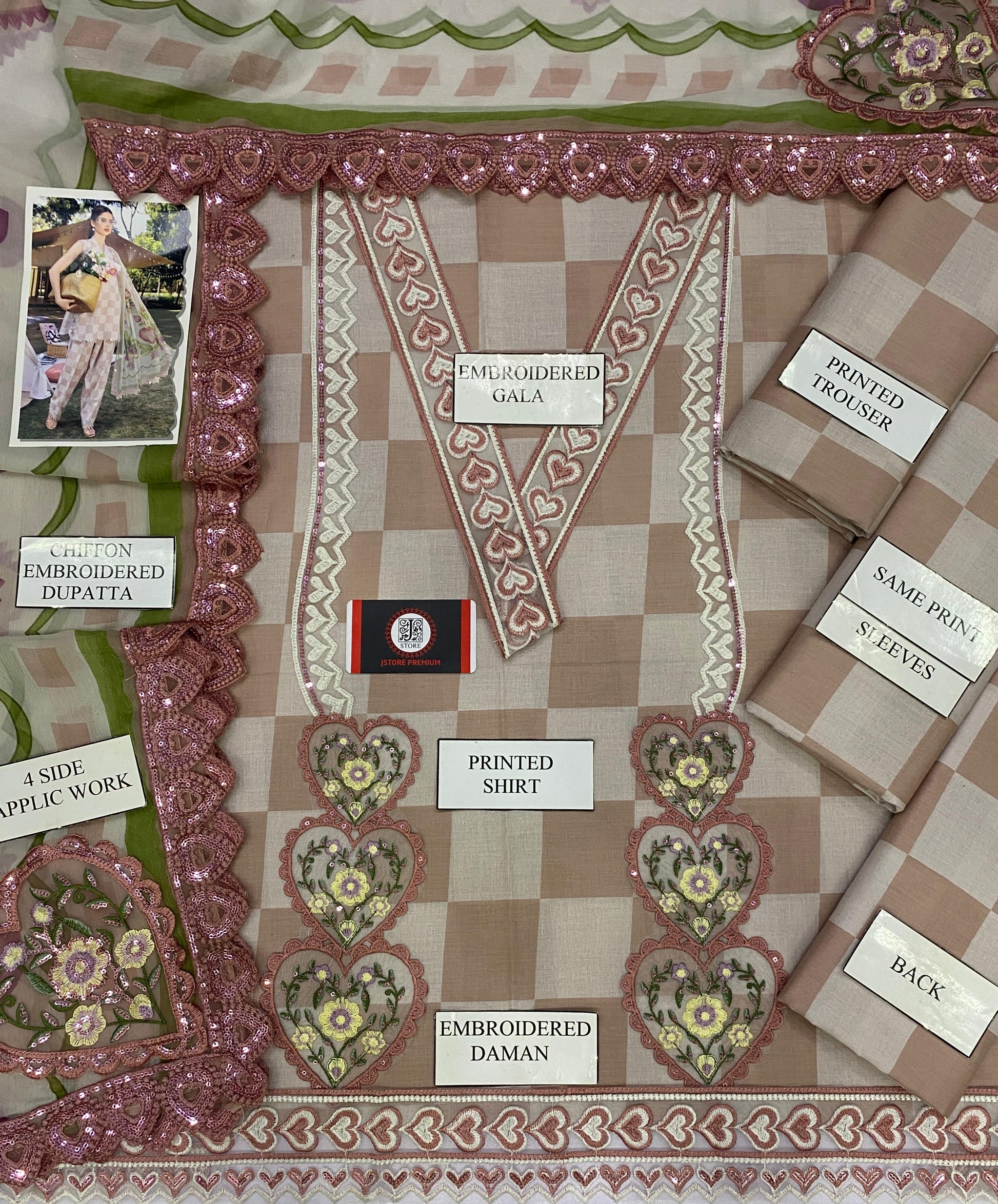 MARIAB BROWN HEART |PRINTED LAWN WITH CHIFFON DUPATTA |3PC UNSTICHED