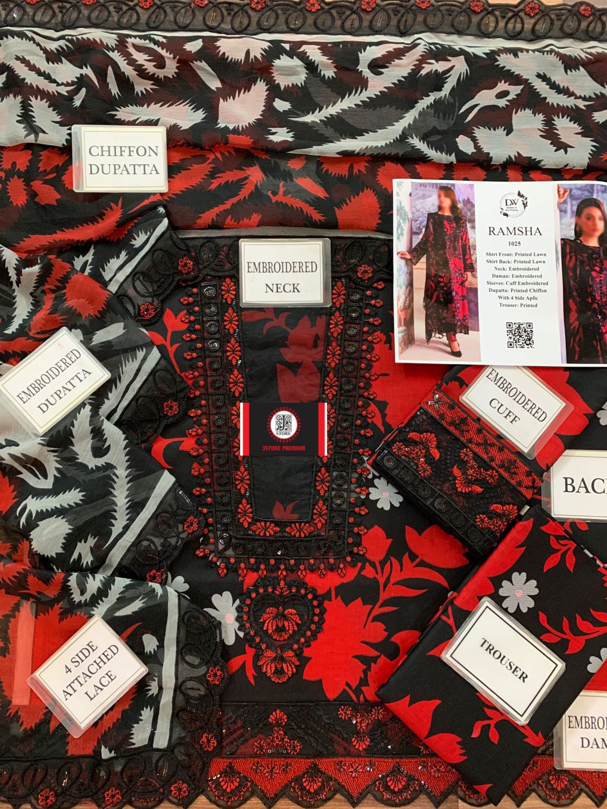 Ramsha Lawn With Chiffon Embroided Dupptta |3Pieces Unstiched